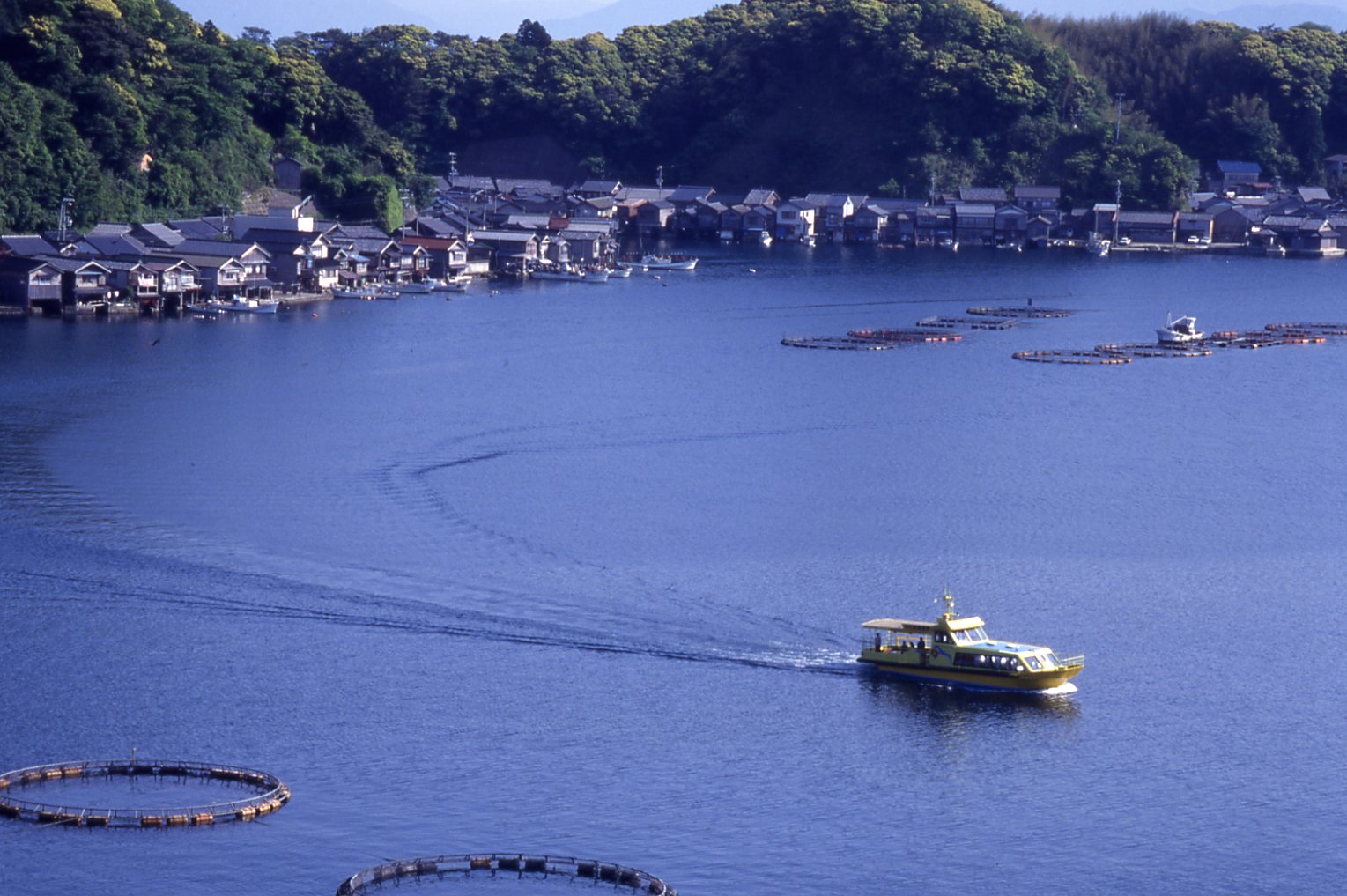 京都府伊根町の伊根浦集落は、舟屋と呼ばれる海上にせり出した船の収納庫の上に住居を構えた珍しい建築物が並び、重要伝統的建造物群保存地区に指定されています。伊根湾を巡る遊覧船では、海上から舟屋を一望、また高台の舟屋の里公園展望台から見渡して、舟屋の街並みをさまざまな角度から見学していただきます。